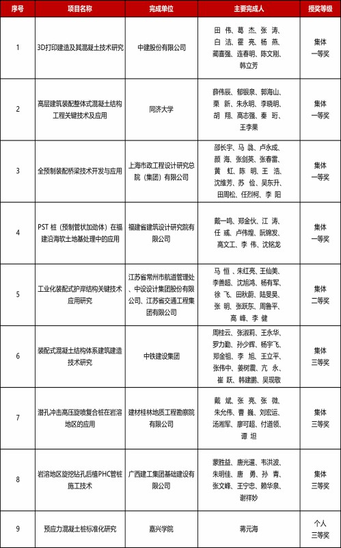 2018年度“建华工程奖”获奖项目