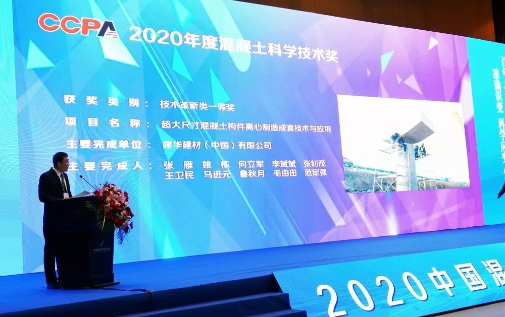 在2020年度混凝土科学技术奖项中,建华建材集团申报的《系列化高性能预制桩成套关键技术研发与应用》荣获科技进步类唯一一个一等奖,《超大尺寸混凝土构件离心制造成套技术与应用》荣获技术革新类唯一一个一等奖。