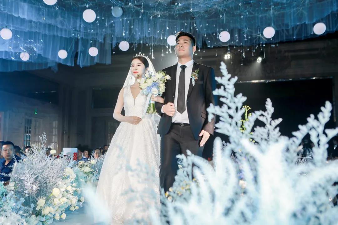 梦境中走出的“海的女儿”拉开梦幻婚礼的序幕,30对新人在“海洋精灵”的引领下依次入场,脸上洋溢着无比幸福的笑容,以默契合拍的舞蹈展示,成为全场焦点。