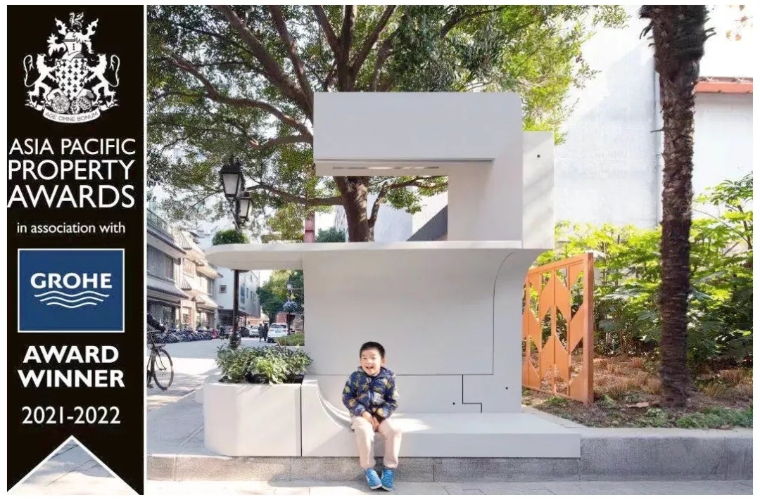 作为对城市景象的一种解读与再生,从嘈杂纷乱的旧城背景环境中挖掘新的可能性,砼亭不仅荣获“2021 IPA国际房地产大奖-上海最佳公共建筑五星奖”,更是斩获“2020-2021年度环球人居设计大奖-公共景观设计类银奖”。