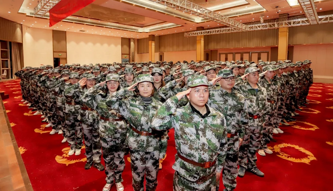 到达参训地点,学员们迅速调整角色,端正态度,以饱满的激情参加了分组仪式。16支连队纷纷上台展示风采,用激昂的口号和创意的造型,将会场气氛带向高潮。