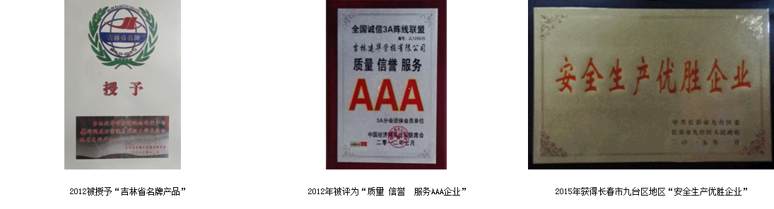 2012被授予“吉林省名牌产品” 2012年被评为“质量 信誉 服务AAA企业”